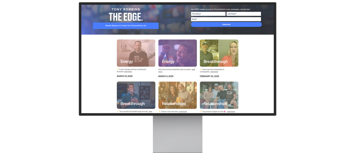 As an in-house designer on the marketing team, I helped shape the digital presence of Tony Robbins and Sage Robbins across social platforms, global campaigns, and high-visibility live events. My work blended branding, UX/UI, and campaign design to support growth, lead generation, and elevated storytelling across the board.